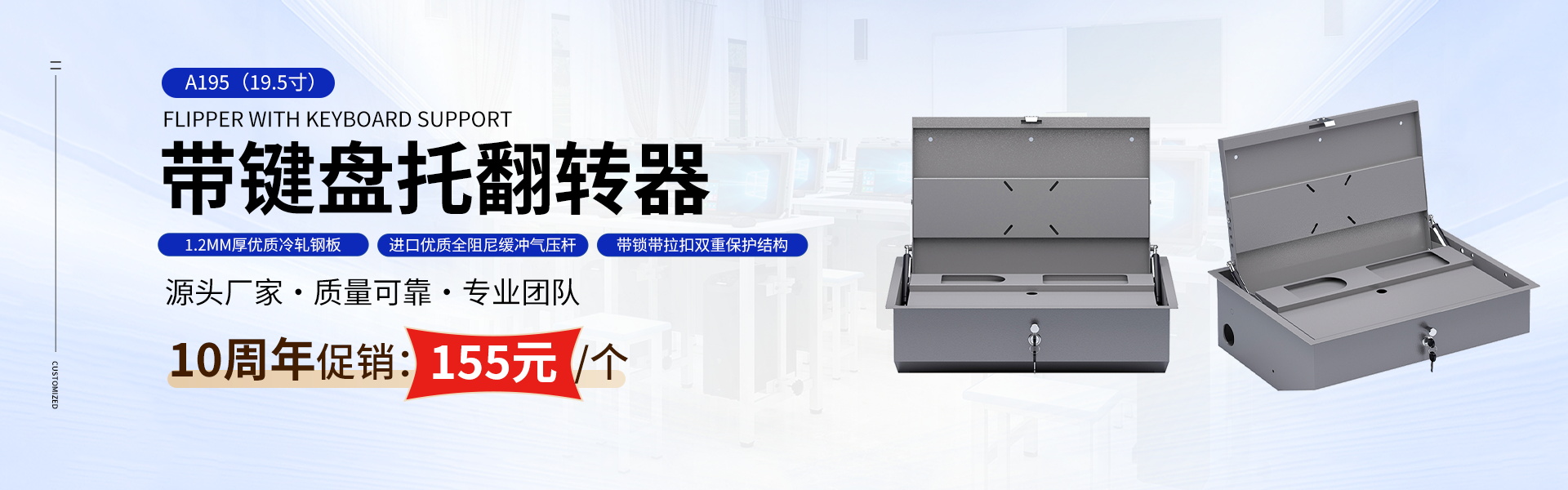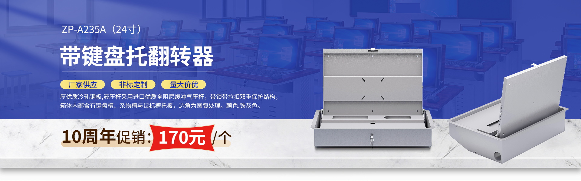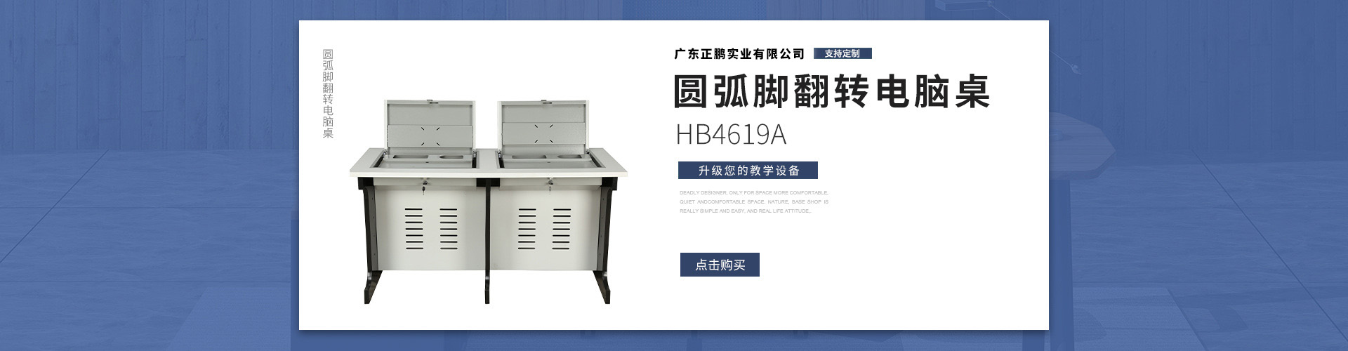 广东正鹏实业有限公司前身为广州正鹏教学设备有限公司;成立于2015年;2023年更名为正鹏实业;公司始终专注于生产学生电脑桌、液晶显示器翻转器、多媒体讲台、电脑室桌椅、实验室桌椅、控制台、操作台等教学家具&设备的独资企业。公司引进了当下最先进的板色家具生产线和数控静电喷塑、钣金焊接等现代化的生产工艺。我们的产品具有环保时尚、坚固耐用、美观大方等特点,适用于各大院校、中小学校、体育馆、剧场、餐厅、会议室等场所。正鹏实业在行内深耕多年,其产品种类繁多,款式新颖,造型美观,材料优质,工艺考究,质量稳定,深得众多客户的支持与厚爱。我们善于制作特色产品,只需说明要求,给出规格参数,或提供1:1的图纸、样板,我们即可做出令您满意的产品。谦迎广大客商前来垂询洽谈!经过多年的发展,我们已经树立了良好的企业形象,在同行和客户中赢得了良好的口碑。公司坚持秉承“以质量求生存,科技促发展,信誉立形象”的宗旨,坚决落实“持续创新,互利共赢”的经营理念。不懈的努力和追求,成就了我们在教学家具