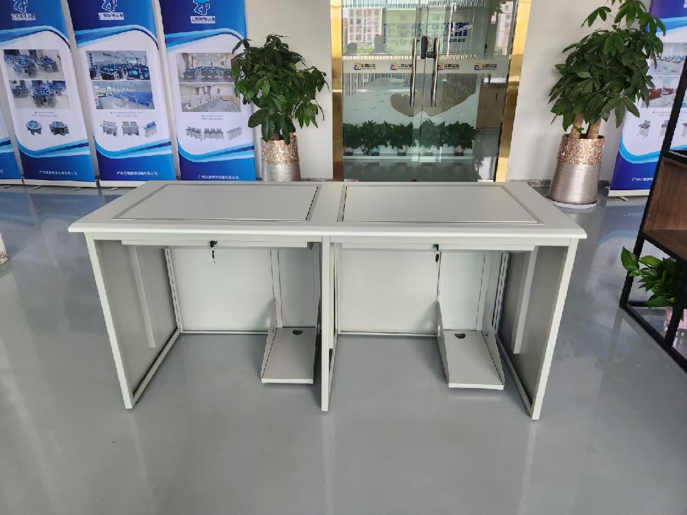 翻转电脑桌以其独特的设计理念,实现了空间利用的zui大化。在不使用电脑时,桌面的翻转收纳功能能够迅速将电脑设备隐藏于桌面之下,極大地节省了机房空间。这一设计不仅使得机房布局更加紧凑合理,还为学校提供了更多样化的空间利用可能性。同时,翻转电脑桌的高度调节功能,能够根据不同学生的身高需求进行灵活调整,确保每位学生都能享受到舒适、便捷的使用体验。